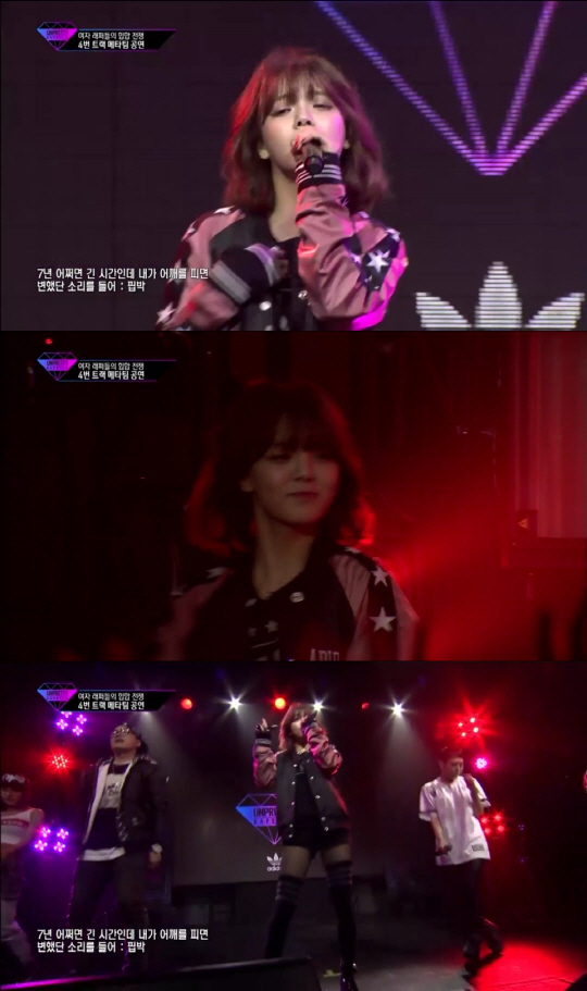 또 그동안 '착한 랩'으로 어필했던 것과는 달리 첫번째 버스를 두고 동갑내기 치타와 기싸움을 벌이는가 하면 4번 트랙 최종 미션 진출자 자리를 놓고 치타와 배틀을 붙게 되자 "너무 사리지 말아야겠다는 생각을 했다. 해서는 안되는 말도 좀 했던 것 같다"며 '센 언니'로 변신할 것을 예고했다.