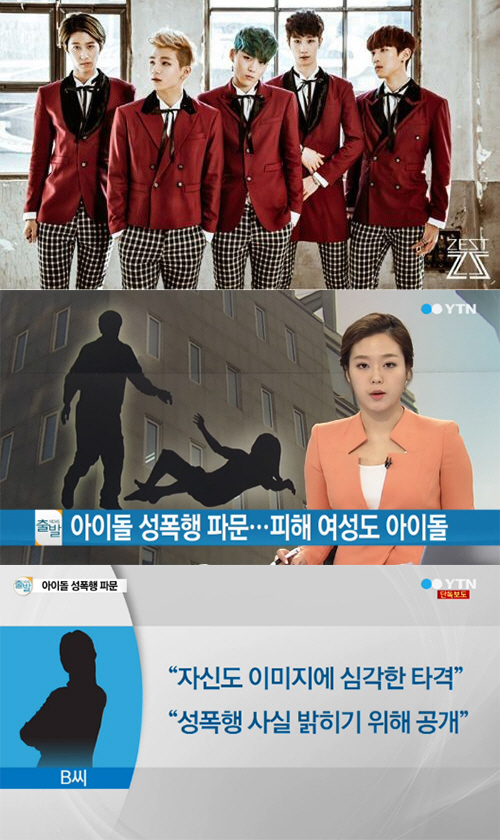 6일 YTN은 "제스트 멤버 A씨에게 성폭행당했다고 주장하는 여성 B씨 역시 다른 아이돌 그룹 멤버인 것으로 확인됐다"고 보도했다.