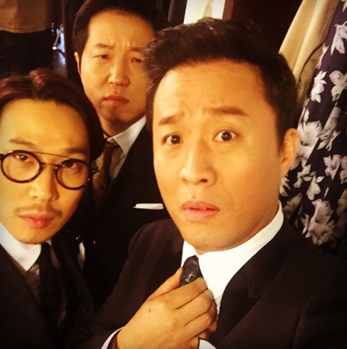 사진 속에는 정준하와 가수 하하, 개그맨 정형돈이 슈트를 잘 차려 입고 포즈를 취하고 있다. 해당 사진은 '무한도전' '식스맨' 특집 촬영 중 찍은 것으로 보인다.
