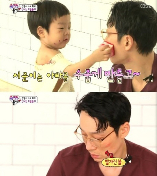 서언은 양손에 물감을 묻히고 형형색색 코끼리를 완성, 서준은 이휘재 얼굴에 그림을 그려 웃음을 자아냈다.