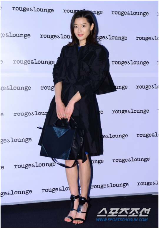 액세서리 브랜드 '루즈 앤 라운지' 행사장에 방문한 자타공인 완판녀 전지현, 브랜드의 뮤즈 답게 블랙 트렌치코트와 블랙 백 그리고 슈즈 등을 블랙 톤으로 매치하여 골드 빛 귀걸이가 더욱 돋보이게 하였네요. 오늘 그녀가 선택한 세련되고 모던한 느낌의 스퀘어 백은 '루즈 앤 라운지'의 15 S/S 컬렉션 제품입니다.