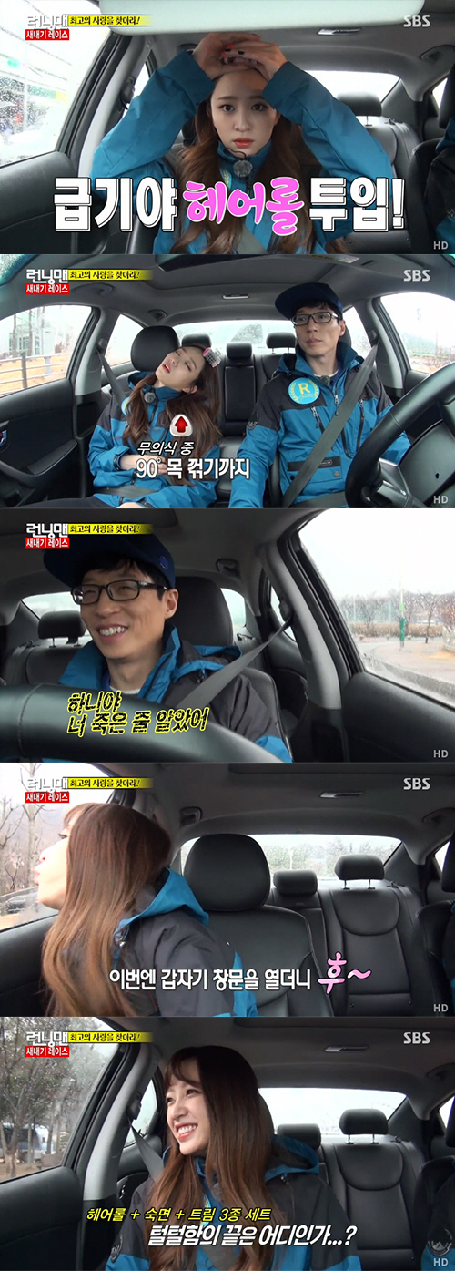 '런닝맨' 하니, 90도 목 꺾으며 숙면…눈 뜨자마자 트림? 유재석 "정말 대단해"