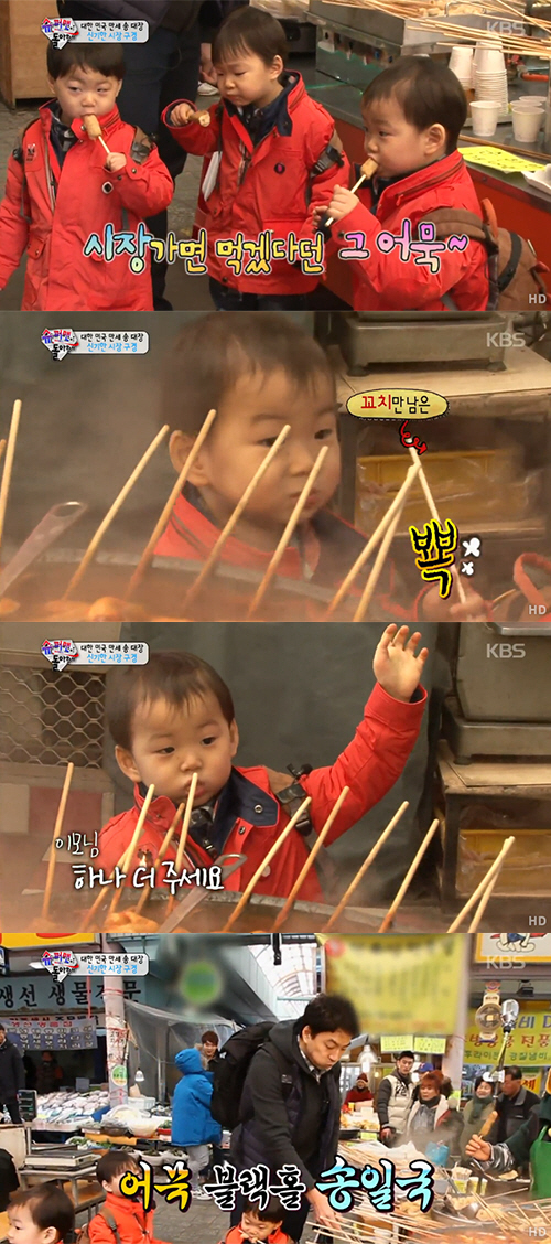 한편 어묵을 먹은 송일국과 삼둥이들은 바로 순대국밥 집으로 향하며 재래시장 먹방까지 섭렵하는 재미를 안겼다. <스포츠조선닷컴>