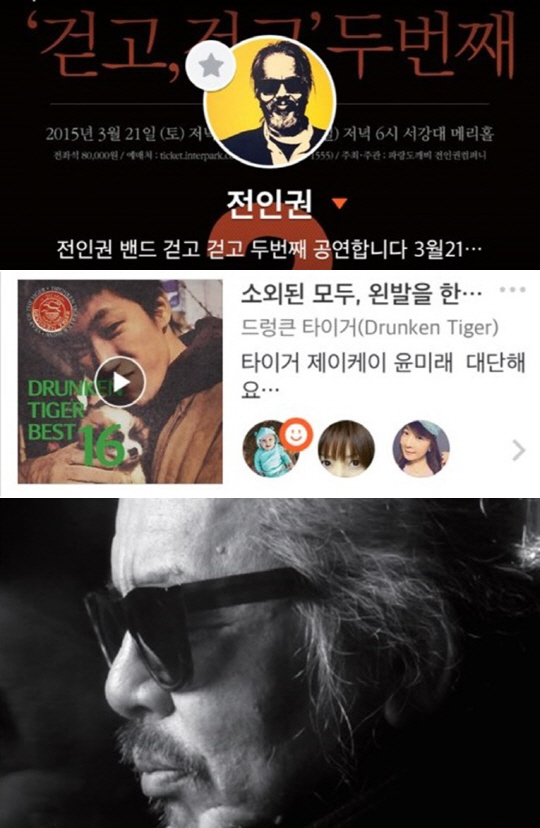 이 글에서 전인권은 타이거JK와 처음 만났던 순간을 회상하며 당시의 일화를 전해 눈길을 끌었다. 그는 "십여 년 전에 윤도현 쇼케이스에 초대받아 갔었어요. 들어가자마자 입구에 머리 길고 수염 긴 청년이 한 명 고개를 숙이고 혼자 앉아 있는데 눈에 확 들어왔어요. 오해 마세요. 나보다 더 거지 차림 같은데 멋있었어요, 충격적으로. 뭔가 여린 듯 강하고. 멋이 보통 인물들과 달랐어요"라고 기억을 떠올렸다.