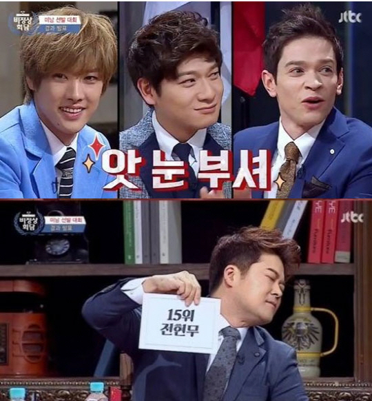 방송인 전현무가 '비정상회담' 미남 선발 대회에서 꼴찌의 영예를 안았다.