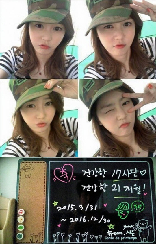 사진에서 김사은은 남동생의 군모를 쓰고 인사를 전하는 깜찍한 모습이다. 아직 유부녀라고 하기엔 앳된 미모가 인상적이다.