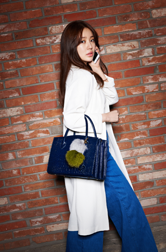 싱그러우면서도 카리스마 있는 봄 여인이 여기 있습니다. 이번에도 연예계 대표 패셔니스타 윤은혜 등장입니다. 그녀가 들고 있는 블루컬러의 백이 단연 눈에 띄네요. 이 백은 사만사타바사 크로코 카르티백입니다. 3단 주름이 포인트로 고급스럽게 장식됐습니다. 윤은혜는 이 백과 함께 심플한 화이트 롱재킷, 블루컬러 와이드 팬츠를 매치하며 싱그러운 '봄 여인'의 분위기를 한껏 뽐내고 있네요.