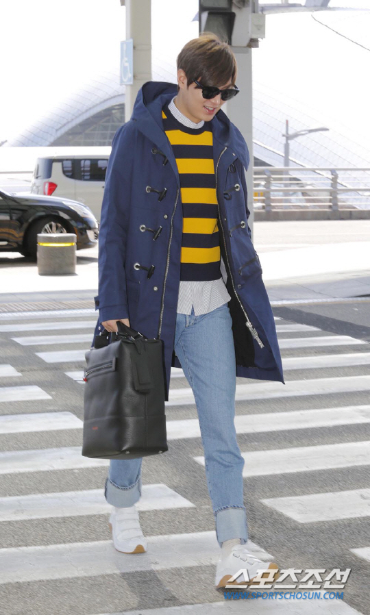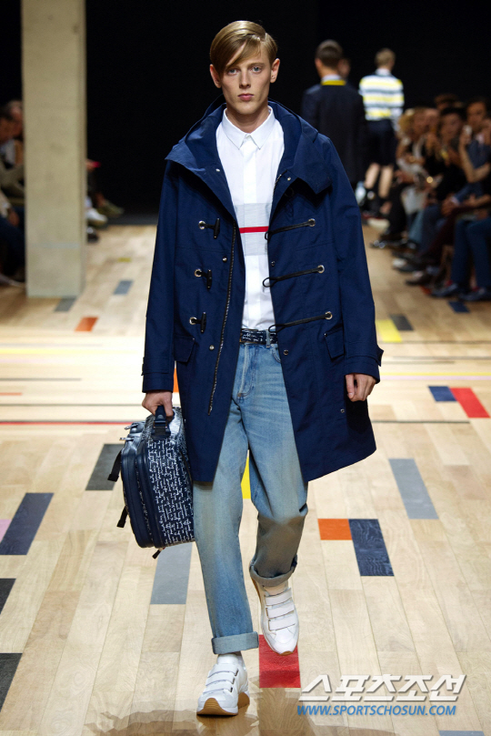 파리로 떠나는 이민호의 남친룩은 한 번만 보기 아깝습니다. 다시 보니, 봄기운이 물씬 나는 니트에 걸친 더플코트가 눈에 띄는군요. 아직 꽃샘추위로 쌀쌀한 날씨 탓에 선택한 이 코트는 캐주얼한 남친룩에 에지를 더하는군요. 이 코트 역시 디올 옴므 캔버스 더플코트입니다. 여기에 화이트레더 스니커즈는 그의 깔끔한 성격을 반영하는 듯 하네요. 투 핸들의 블랙 레더 브리프 케이스는 시크한 매력을 더합니다. 모두 디올옴므 15 섬머 컬렉션 제품입니다. 가격은 미정. <스포츠조선 연예패션팀>