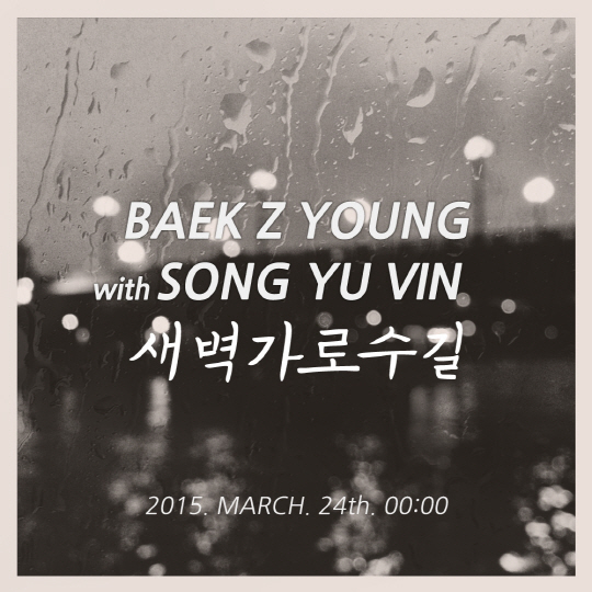 이날 공개된 티저 이미지에는 '백지영 with 송유빈'이라는 텍스트와 함께 신곡 제목인 '새벽 가로수길'과 발매 날짜인 '2015년 3월 24일'이 적혀있다.