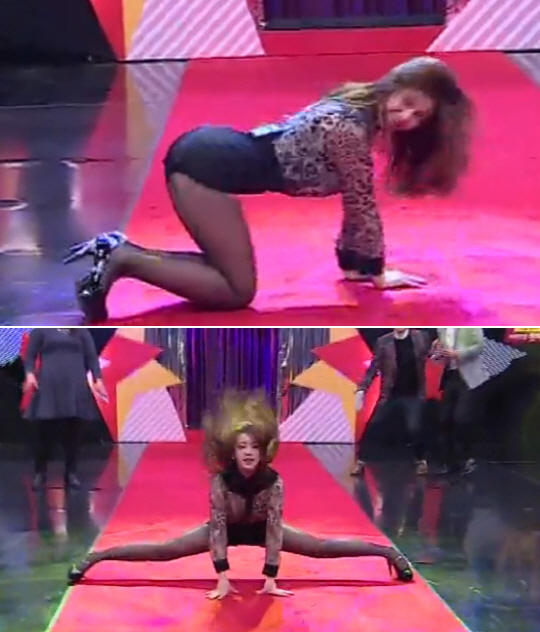 그 중에서도 전효성 존재는 단연 돋보였다. 신고식 '댄스댄스'에서 전효성은 탄력적인 몸매가 돋보이는 '다리 찢기' 퍼포먼스와 도발적인 댄스로 남성 출연진들을 사로잡았다.
