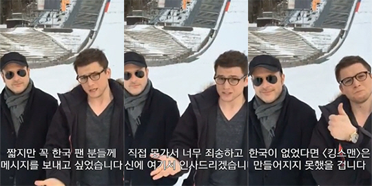 약 1분 10초가량의 영상에서 태론 에거튼은 자신과 매튜본 감독을 소개하며 '킹스맨'에 뜨거운 관심을 보여주는 한국 팬들을 향한 고마운 마음을 표현했다.