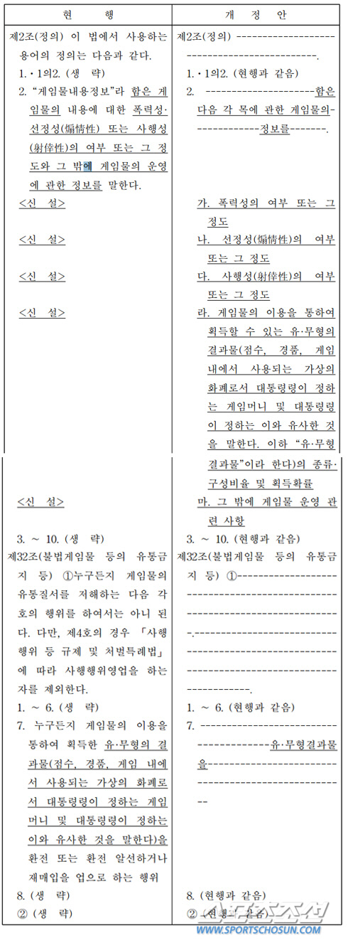 이에 게임물의 이용을 통하여 획득할 수 있는 점수·경품·게임 내에서 사용되는 가상의 게임머니 등의 유·무형의 결과물의 종류·구성비율 및 획득확률 등에 관한 정보가 게임물내용정보에 포함되도록 정의규정을 보완하여 게임물의 유통 및 등급표시 등에 반영되도록 함으로써 확률형 아이템 판매 게임물이 건전한 게임물로 이용되게 하려는 것임