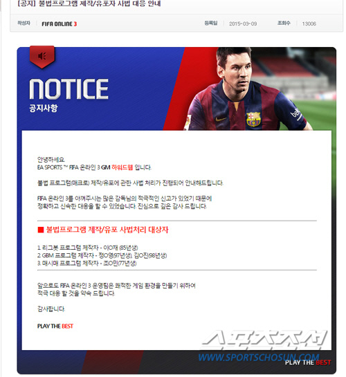 넥슨 측은 "피파온라인3를 아껴주는 유저들의 적극적인 신고가 있었기 때문에 정확하고 신속한 대응을 할 수 있었다. 앞으로도 쾌적한 게임 환경을 만들기 위해 적극적으로 대응해 나갈 것"임을 강조했다.