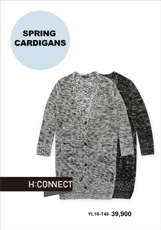 이 카디건은 블랙, 그레이 두 가지 컬러가 있으며 전국 에이치커넥트 매장에서 구매할 수 있습니다. 품명은 YL10-T48.가격은 3만9,900원. <스포츠조선 연예패션팀>