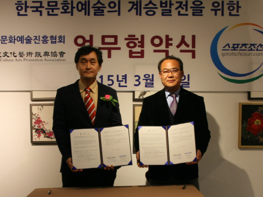 (사)한국전통문화예술진흥협회와 스포츠조선이 11일 서울 인사동 갤러리 라메르에서 업무협약식을 가졌다.