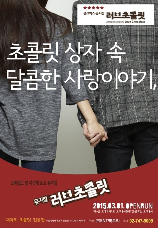 연인들을 위한 쥬크박스 뮤지컬 '러브 초콜릿'은 이엔티팩토리가 주최하고 RNX엔터테인먼트가 주관하는 공연으로 이번 화이트데이를 화려하게 수놓을 예정이다.