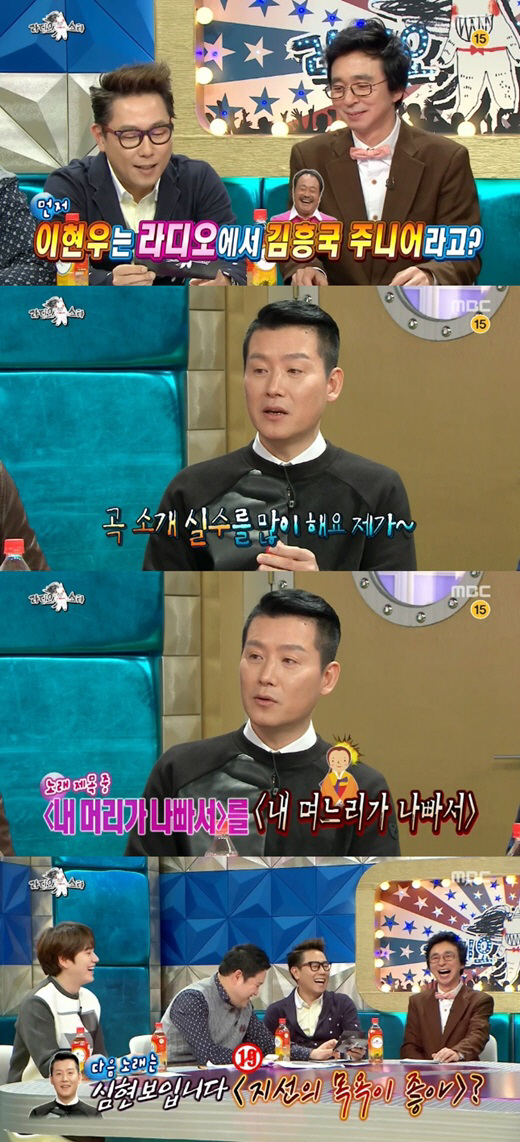 이날 방송에서 MC 윤종신은 "이현우는 라디오에서 김흥국 주니어라던데"라며 이현우의 라디오 실수담을 언급했다