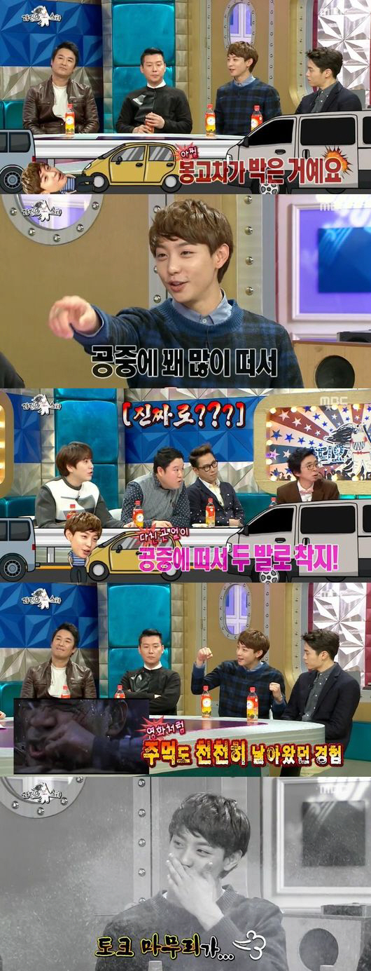 '라디오스타' 현우가 어렸을 적 봉고차에 치인 경험을 고백했다.