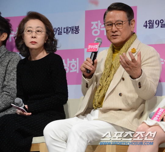 영화 '장수상회(감독 강제규)'의 제작보고회가 12일 서울 압구정CGV에서 열렸다. 박근형이 질문에 답하고 있다. 압구정=허상욱 기자 wook@sportschosun.com/2015.03.12/