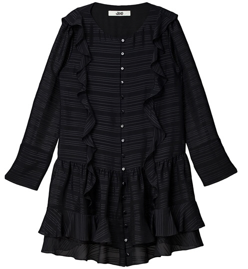 '괜찮아 사랑이야'에서 이광수의 그녀로 대중에게 이름을 알린 후, 첫 주연작인'여왕의 꽃'제작발표회에 등장한 이성경. 모델출신답게 귀여우면서도 섹시한 느낌의 블랙 드레스를 훌륭하게 소화하네요. 은근히 드러나는 어깨라인과 밑단까지 이어지는 셔링이 포인트인 이 드레스는 럭키슈에뜨의 Stripe See-through Dress입니다. 모든 것을 포용하는 블랙 색상인 만큼, 그녀처럼 크고 화려한 액세서리로 포인트를 주는 것도 좋겠네요. 가격은 46만8,000원.