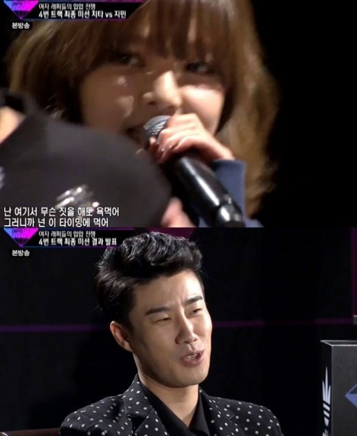 이날 치타와 지민은 강도 높은 디스를 펼치며 박빙승부를 보였다. 치타는 "너는 진짜 바비인형 같지만 바비가 되진 못해. 그건 너도 알지?"라는 랩을 했다. 이에 지민은 "난 잘난척을 못해. 잘났기에. 랩하는 동안에도 나는 억대 CF. 쇼가 전부인 너와 달라. 상대하기 귀찮아"라는 랩으로 상대를 디스했다.
