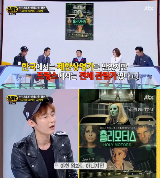 이에 방송인 허지웅은 "프랑스는 영화에 거의 제한을 두지 않는다"고 말했고 개그맨 김구라는 "프랑스는 영화의 발상지답게 이상한 영화들이 많다"며 "레오 까락스 감독의 '나쁜피' 등이 있다"고 대답했다.