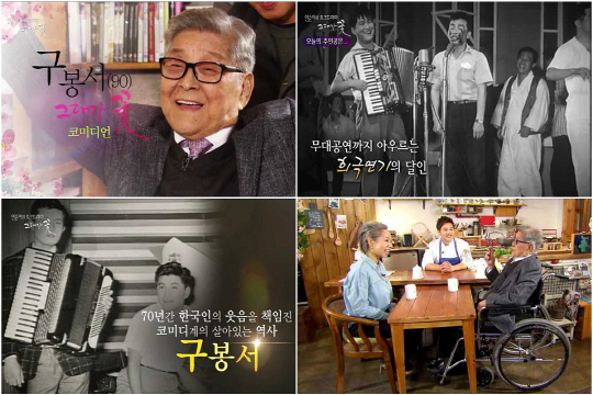 구봉서는 TV 개국과 함께 1960~70년대 한국 코미디의 시작과 황금기를 이끈 코미디언. MBC '웃으면 복이 와요'를 비롯해 영화 '돌아오지 않는 해병', '오부자', '연산군', '수학여행' 등 다수의 작품에서 희극과 정극을 넘나드는 연기를 펼쳤다.