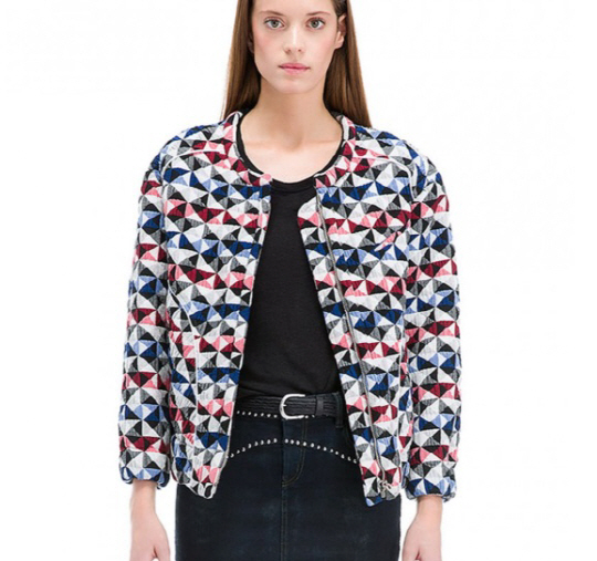 전직 패션 모델의 아우라를 가득 뿜어내는 변정수, 인스타그램에서도 평소 스타일리시한 사복 패션을 소개하여 많은 인기를 모으고 있는데요, 이번엔 독특한 봄 재킷을 공개하였습니다. 바로 이로(IRO)의 한스 봄버 자켓인데요. 레드계열과 블랙계열의 컬러들이 삼각형 패턴으로 엣지있게 어우러져 경쾌하고 세련된 느낌을 줍니다.