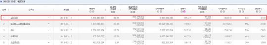 2주 동안 박스오피스 정상을 질주하던 '킹스맨'을 근소하게나마 앞선 수치. 지난달 11일 개봉한 '킹스맨'은 여전히 인기 행진 중이다. 같은날인 14일 17만2965명을 동원, 누적 관객수 467만7262명을 기록했다.