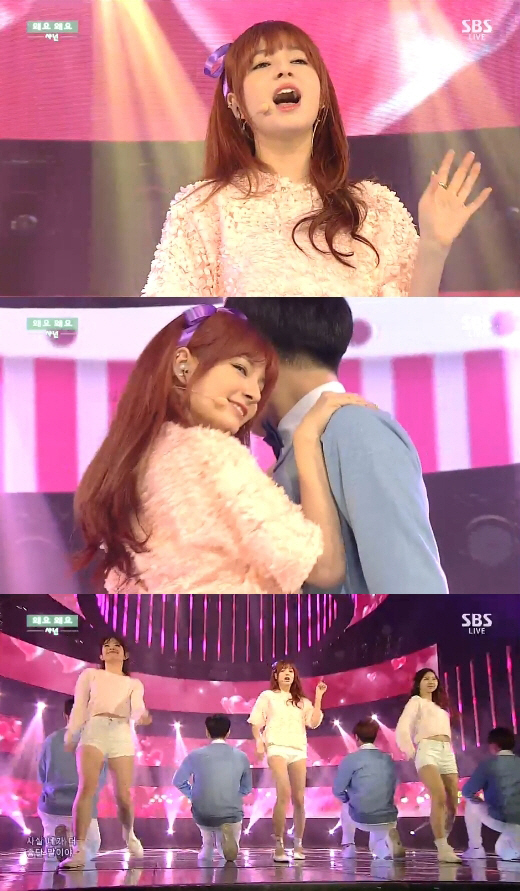 샤넌은 15일 방송된 SBS '인기가요'에서 신곡 '왜요왜요'를 열창했다.