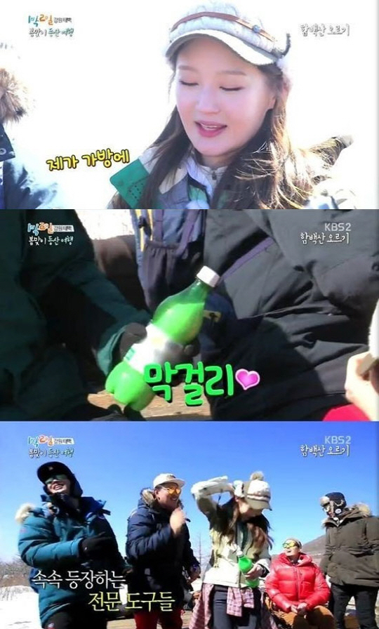 이날 방송에서 강민경은 함백산 오르던 중 "간단하게 간식을 준비했다"며 준비한 간식을 꺼내자 멤버들은 환호했다.