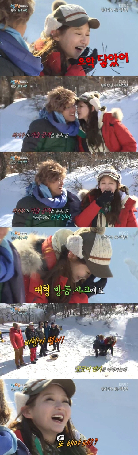 이에 강민경은 "으악 닿았어"라고 발끈하면서도 꿋꿋이 연기를 이어갔다.