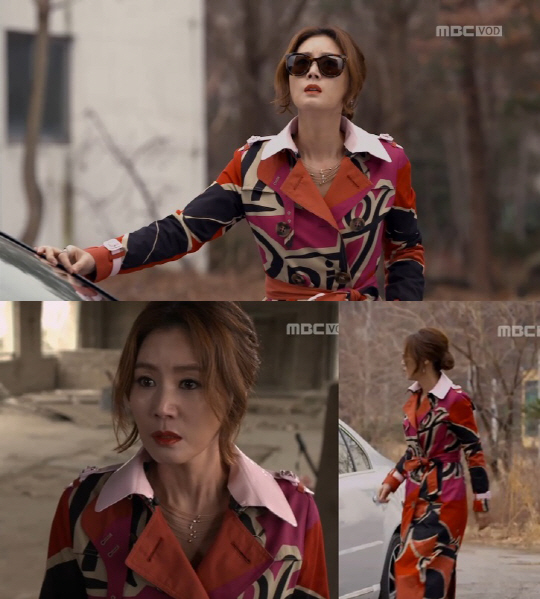 드디어 기대 속에 첫 방송된 '여왕의 꽃'의 김성령 트렌치코트가 화제입니다. 역시나 패셔니스타 다운 면모로 첫 회부터 화려하고 색감있는 다양한 패션을 선보인 김성령. 극 중에서 살인을 저지르게 되는 중요한 강렬한 장면에서 착용한 코트는 버버리프로섬의 북 커버 프린트 트렌치코트입니다. 레드 계열의 컬러가 트렌치 전체에 화사한 조화를 이루고 있으며 유니크하게 뻗은 넥 카라의 배색또한 연핑크와 레드로 화려함을 더합니다. 강력한 성공에 대한 열망과 욕망에 둘러싸인 캐릭터를 어떠한 패션으로 소화할지 앞으로도 기대되네요. 제품번호는 45310511, 가격은 580만원대입니다.