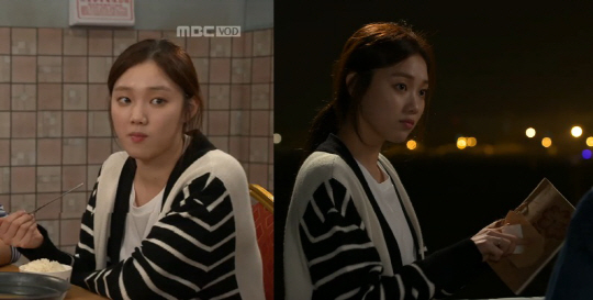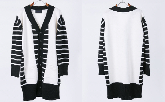 제작발표회에서부터 엣지있는 패션으로 화제를 불러일으켰던 차세대 패셔니스타 이성경, 드디어 첫방송된 '여왕의 꽃'의 사소한 아이템들도 그냥 놓칠 수 없죠. 뒤로 단아하게 묶은 머리스타일에 팔 부분이 블랙&화이트 스트라이프가 특징인 카디건을 착용했습니다. 블랙과 화이트의 두가지 색상만으로 구성되었지만 배색을 차지하는 범위를 달리하여 유니크한 느낌이 살아있는 옷입니다. 카디건은 쏘잉바운더리스의 제품으로 제품번호는 SB1403KN0401, 가격은 17만 8천원대입니다. <스포츠조선 연예패션팀>