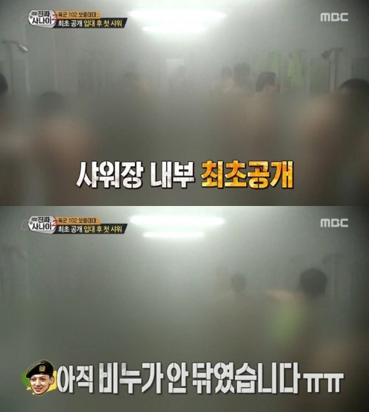 이날 군 생활을 시작한 멤버들은 식사를 마치고 취침 전 샤워를 함께 했다.