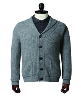 유준상의 그레이 숄 칼라 카디건은 브리티시 클래식 브랜드 닥스 신사(DAKS MEN)의 2015 FW제품입니다. 청키한 느낌의 멜란지 원사로 잔잔한 조직감이 느껴지는 이 카디건은 캐시미어 블랜드 제품입니다. 품번은 DMD14D071GE. 가격미정. <스포츠조선 연예패션팀>