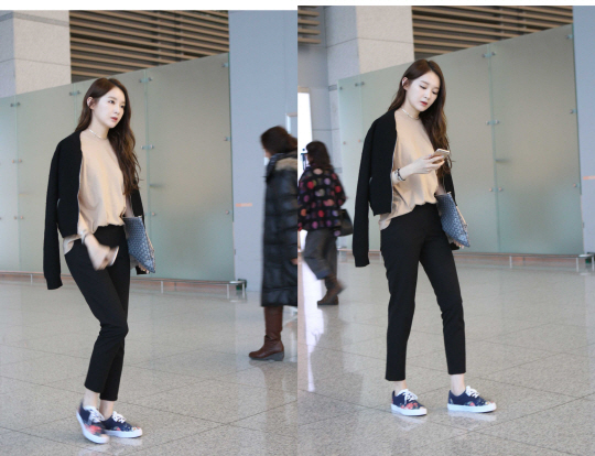 그렇습니다. 스타일도 중요하지만 공항패션은 일단 편해야죠. 그러나 편안한 운동화 차림에도 우월한 기럭지를 뽐내는 다비치의 강민경. 자연스러운 웨이브 컬의 긴 머리를 늘어뜨리고 전체적으로 심플한 스타일의 카디건 룩을 선보였습니다. 봄 느낌이 물씬 풍기는 화사한 플라워 패턴의 스코노 플로랄걸 프린팅의 네이비 스니커즈로 포인트를 주며 청순미를 마음껏 뽐내 여친룩의 정석을 보여주고 있네요. 강민경이 신은 편안한 운동화는 스코노의 플로랄걸 스니커즈입니다. 제품번호는 SVL5207LB이며 가격은 6만 9,000원. <스포츠조선 연예패션팀>