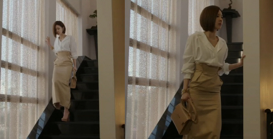 지난 11일 방송된 '킬미힐미'의 김유리의 럭셔리한 룩이 화제가 되고 있습니다. 깊게 파진 브이 넥 라인이 돋보이는 오버핏 화이트 셔츠에 허리라인이 그대로 드러나는 하이웨스트 롱 스커트. 거기에 스커트와 비슷한 톤의 베이지컬러 미니 크로스백은 가녀리면서도 우아한 김유리의 매력을 드러낼 환상의 조합이네요. 블라우스는 분더캄머 제품으로 12만 9,000원. 스커트는 폴앤앨리스 2015 S/S 컬렉션 제품입니다.