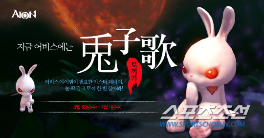 엔씨소프트는 '아이온'에서 '지금 어비스에서는 토끼가' 이벤트를 18일부터 4월 1일까지 진행한다. '지금 어비스에서는 토끼가'는 마스터 서버를 대상으로 진행하는 이벤트이다.