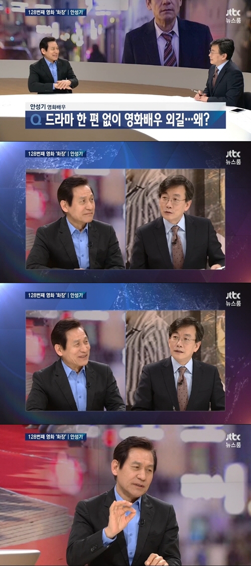 18일 오후 방송된 JTBC '뉴스룸'에서는 영화 '화장'(임권택 감독, 명필름 제작)의 주연을 맡은 안성기가 출연해 손석희 앵커와 인터뷰를 가졌다.