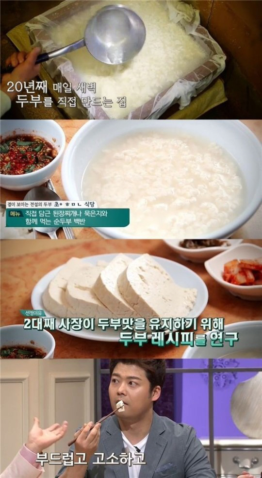 두부 맛집의 비결로는 20년간 가장 맛있는 두부를 만들기 위해 끊임없이 노력한 사장님의 노력이 꼽혔으며 출연진들은 그의 열정이 최고의 두부를 만들었다고 전했다.