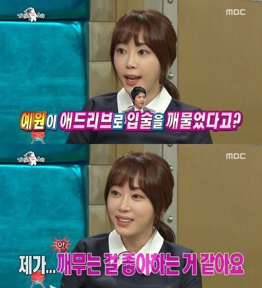 이날 MC 김구라는 강예원에게 "영화 '해운대'로 떴는데 이민기와의 키스신이 있었다. 애드리브로 이민기의 입술을 깨물었다고 들었다"고 질문했다.
