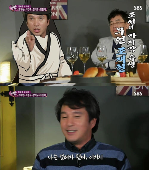 그러자 이경규는 "조재현 덕분에 나는 행주 정도 됐다"고 덧붙여 또 한 번 웃음을 자아내게 했다.