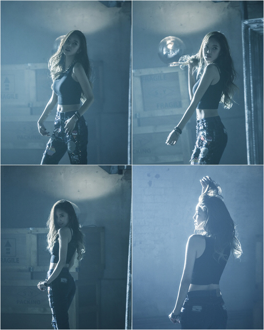 NS윤지는 배꼽이 드러나는 탱크톱 상의에 스팽글 장식이 된 청바지를 매치한 스트리트 패션을 선보이고 있다. 내추럴한 모습에도 숨길 수 없는 볼륨감과 탄탄하게 다져진 복근, 그리고 잘록한 허리 라인으로 이어지는 늘씬한 S자 바디 라인이 눈길을 끈다. 이는 곧 있을 컴백 무대에서도 그대로 보여질 예정.