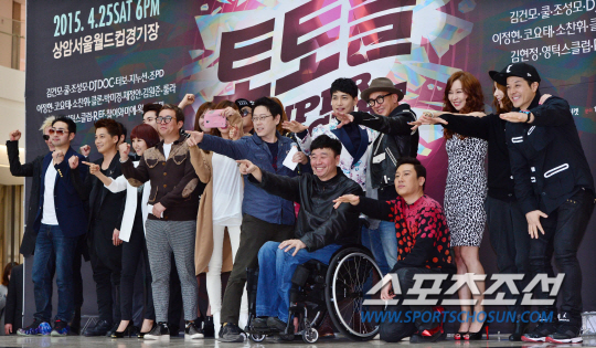토토즐 슈퍼콘서트'의 제작발표회가 열렸다. 제작발표회에서 출연진들이 포즈를 취하고 있다. 김경민 기자 kyungmin@sportschosun.com / 2015.03.19. |