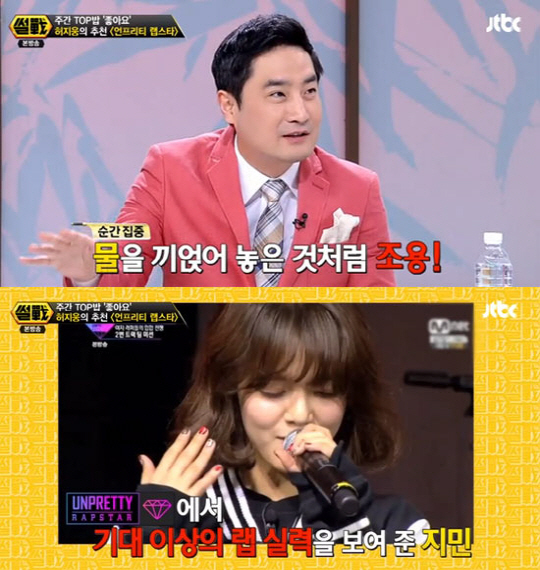 방송인 강용석이 AOA 멤버 지민의 랩을 극찬했다.