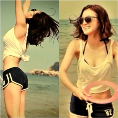 당시 NS윤지는 민소매 셔츠에 핫팬츠 비키니를 착용해 섹시한 보디라인을 자랑했다.