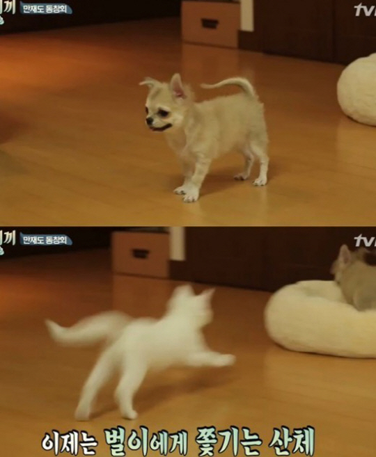 '삼시세끼 어촌편' 마스코트 강아지 산체와 고양이 벌이의 관계가 역전됐다.