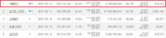 '위플래쉬'가 20일 박스오피스 1위를 차지했다. 지난 12일 개봉 이후 9일 만에 50만 명 관객을 돌파했다. 쟁쟁한 동시기 개봉작들, 신작들의 공세에도 흔들림 없는 역주행을 해온 데 이어, '킹스맨'까지 제치며 역전극을 펼쳐 보였다.