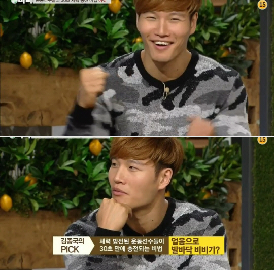 런닝맨에서 볼 수 있었던 김종국은 늘 아웃도어 차림이었습니다. 그러나 오랜만에 타이트한 핏의 니트를 착용한 모습을 보니 역시나 탄탄한 몸매의 남성미가 극대화되는데요, 블랙과 그레이의 톤온톤으로 유니크한 자태를 뽐내는 이 아이템은 테이트 제품입니다. 제품번호는 KA5S1-MSPO50, 가격은 6만 9,000원. 이제 니트 하나만 입어도 되는 날씨에 포인트로 착용하면 좋아요. <스포츠조선 연예패션팀>